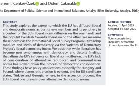We are pleased to announce that Assoc. Prof. Dr. I. Cerem Cenker-Özek and Assoc. Prof. Dr. Didem Çakmaklı have published a new article entitled “The Limits of EU Liberal Norm Diffusion: A Quest for ‘Better Democracy’?” in the Journal of Southeast European and Black Sea Studies.