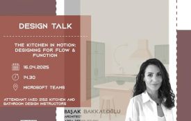 The Faculty of Fine Arts and Architecture at Antalya Bilim University, Department of Interior Architecture and Environmental Design, has organized another significant event in support of professional development and in collaboration with the industry. As part of the course IAED 2152 Kitchen and Bathroom Design, coordinated by Lecturer Elif Cemre BAKKALOĞLU KÜÇÜKMOTOR, a Design Talk was held on April 16, 2025, via the Microsoft Teams platform. The guest speaker, Architect Başak BAKKALOĞLU, Co-Founder of Abra Design Studio, delivered an inspiring presentation titled "The Kitchen in Motion: Designing for Flow and Function," offering valuable insights to the participants.