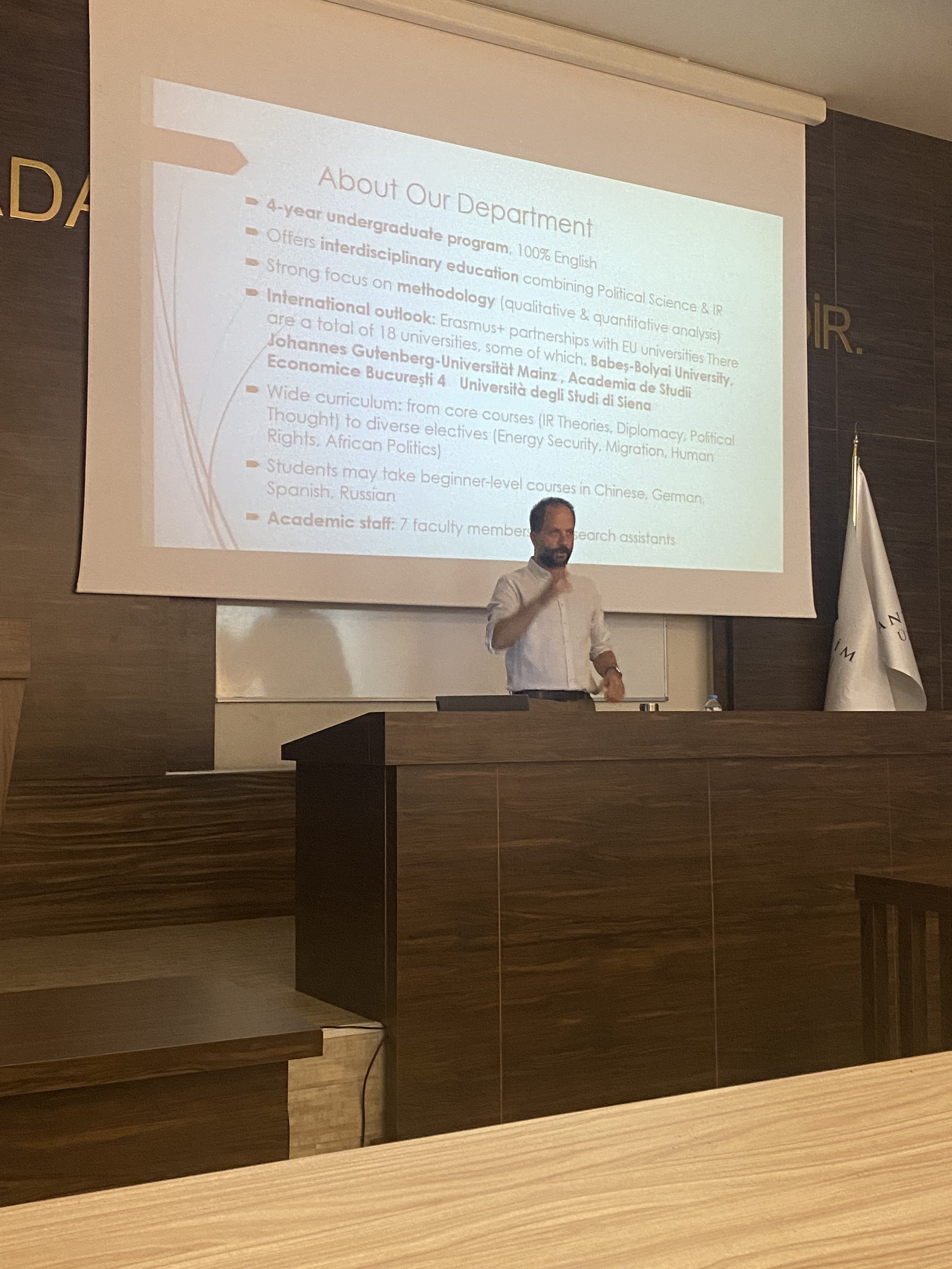 An orientation presentation was held for the first-year students of the Department of Political Science and International Relations. The presentation aimed to help students adapt to university life, clarify their academic goals, and become familiar with the Department’s culture. The Department Chair, Assist. Prof. Dr. Burak Toygar Halistoprak introduced the Department and shared valuable insights on academic processes, career goals, and university life.