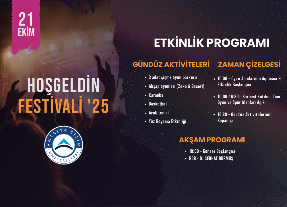 Sevgili öğrenciler, kampüsümüzde gün boyu eğlence ve spor dolu bir festival sizi bekliyor! Gündüz aktiviteleri 10:00’da başlıyor, akşam 19:30’da konserle coşkuyu zirveye taşıyoruz.