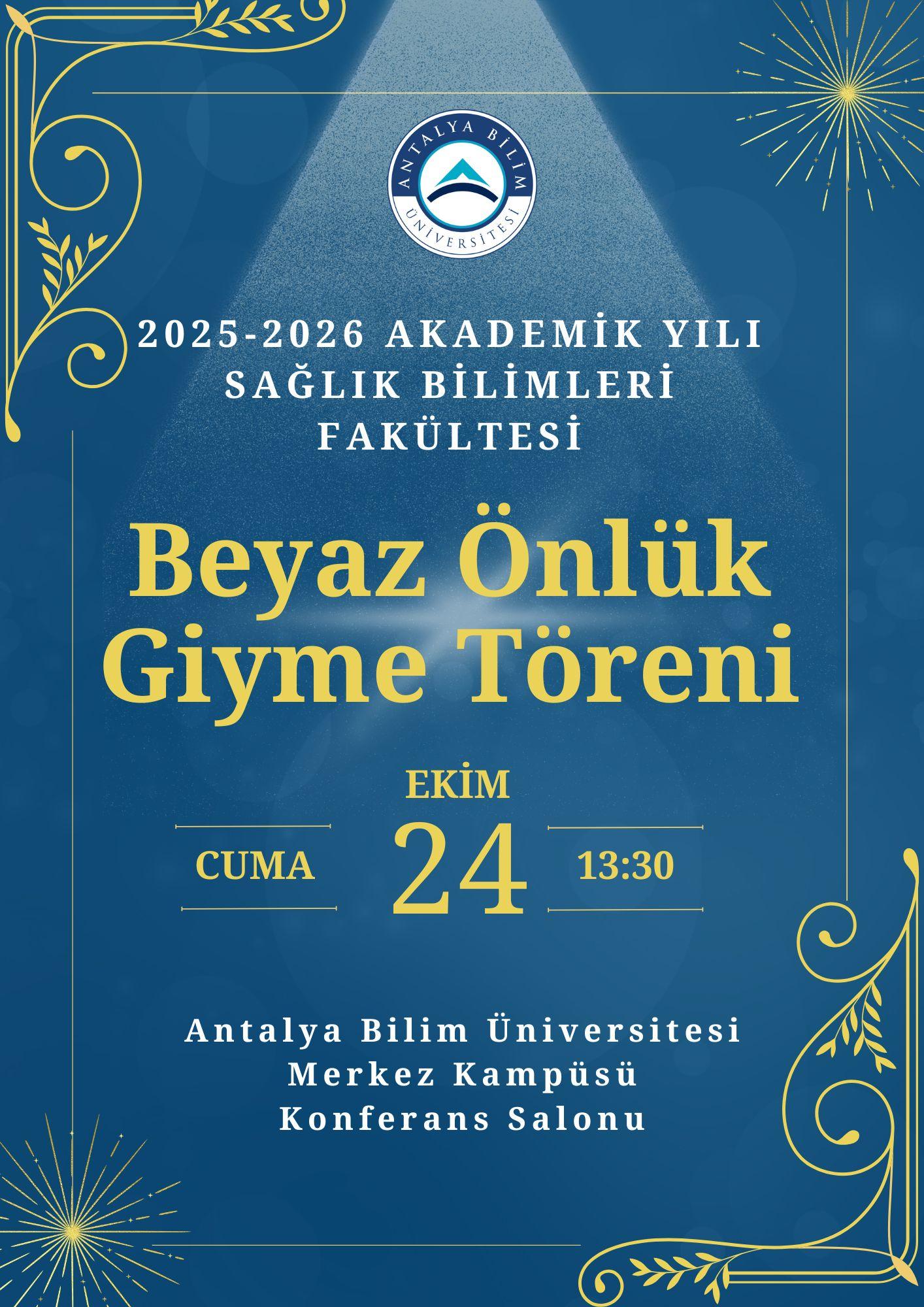Antalya Bilim Üniversitesi Sağlık Bilimleri Fakültesi olarak, öğrencilerimizin meslek yaşamlarına attıkları ilk adımı simgeleyen “Beyaz Önlük Giyme Töreni”ni gerçekleştireceğiz.