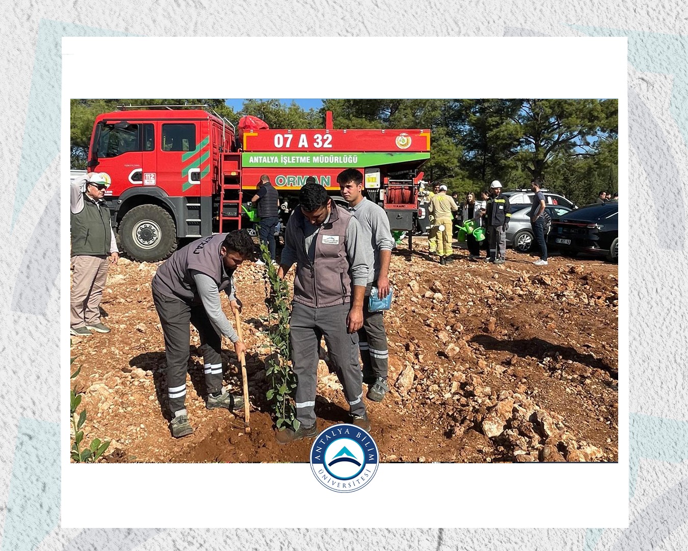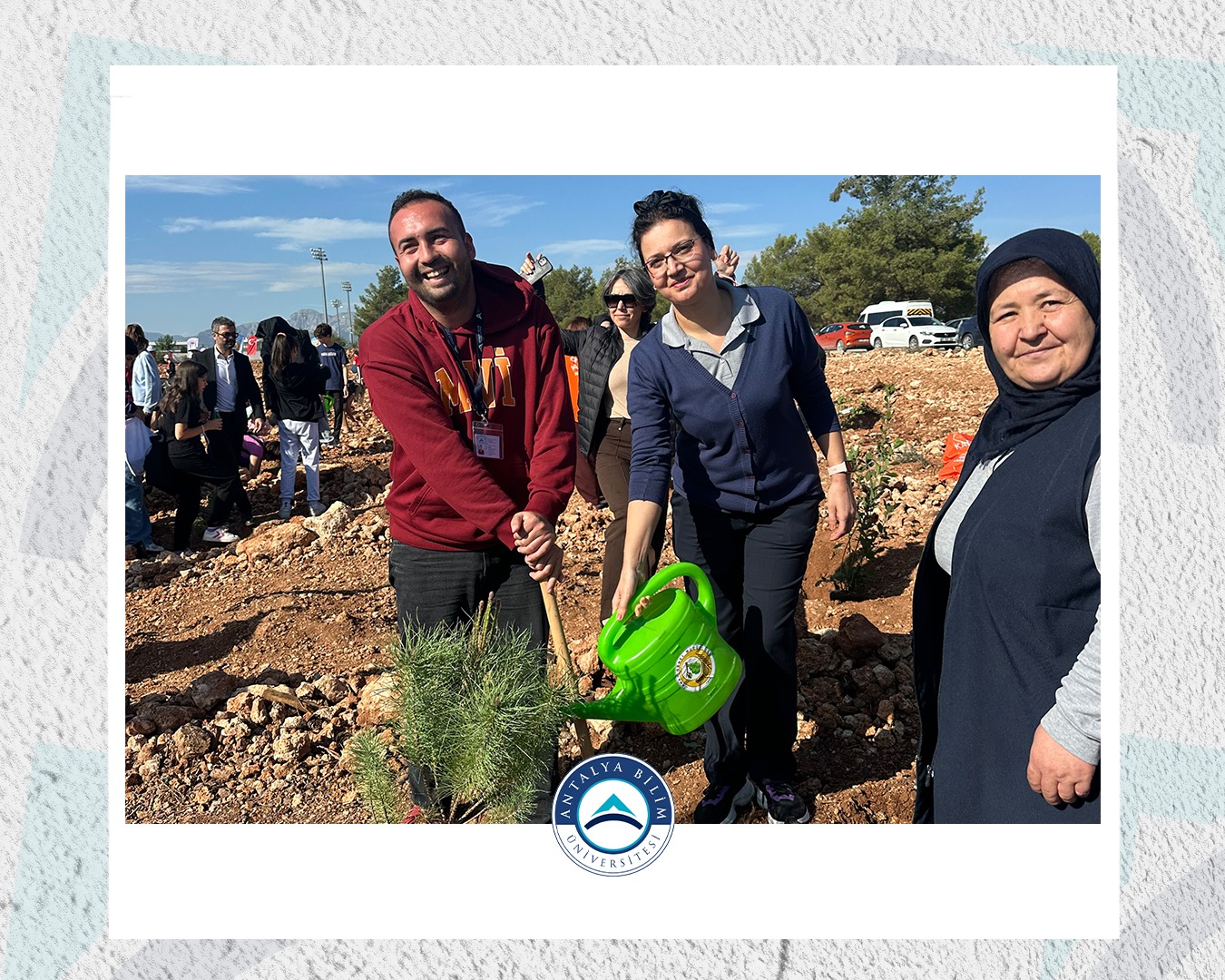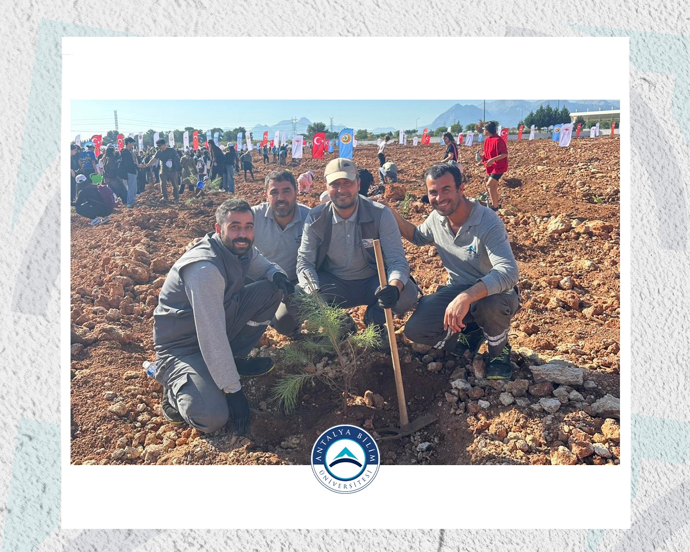 Antalya Bilim Üniversitesi (ABÜ), 11 Kasım Milli Ağaçlandırma Günü dolayısıyla “Yeşil Vatan Seferberliği” çağrısıyla Döşemealtı’nda düzenlenen fidan dikim etkinliğinde yer aldı. Aile ve Sosyal Hizmetler Bakanlığı ile Tarım ve Orman Bakanlığı koordinasyonunda yürütülen etkinlikte öğrencilerimiz, akademik ve idari personelimizle birlikte fidanları toprakla buluşturdu.