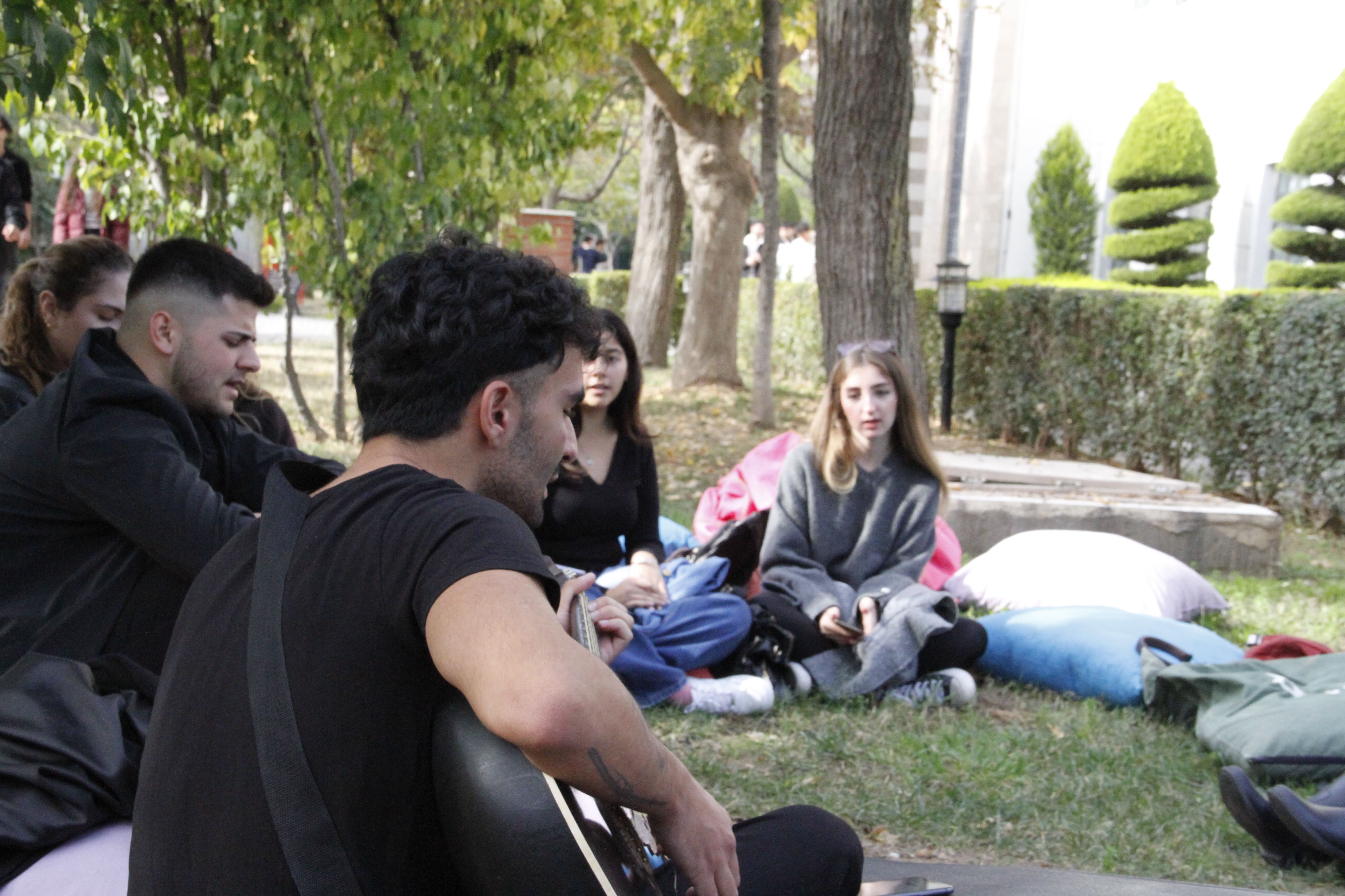 Etkinlik, üniversite öğrencilerinin sanata olan ilgisini ve ortak müzik kültürünü pekiştirmek amacıyla düzenlendi. Çok sayıda öğrencinin bir araya geldiği bu buluşmada, katılımcılar kendi gitarlarıyla eşlik ederek toplu halde şarkılar seslendirdi. Ortaya çıkan coşkulu ve enerjik atmosfer, etkinliğin temel hedefi olan sosyal etkileşimi ve eğlenceyi en üst düzeye taşıdı. Öğrenciler, ders stresinden uzaklaşarak müziğin birleştirici gücü altında keyifli vakit geçirme fırsatı buldu.