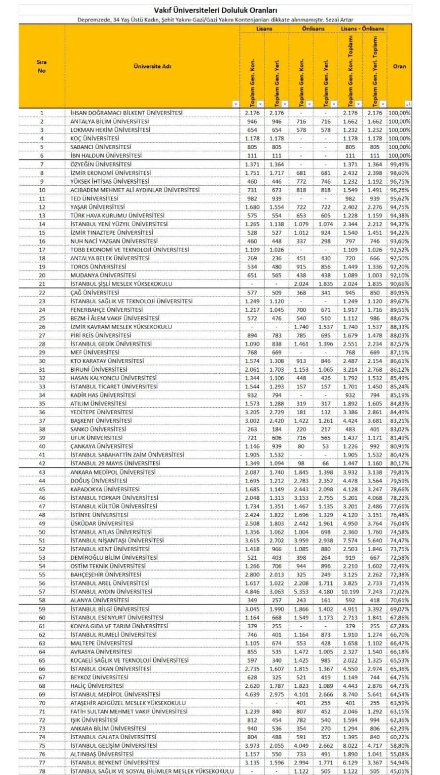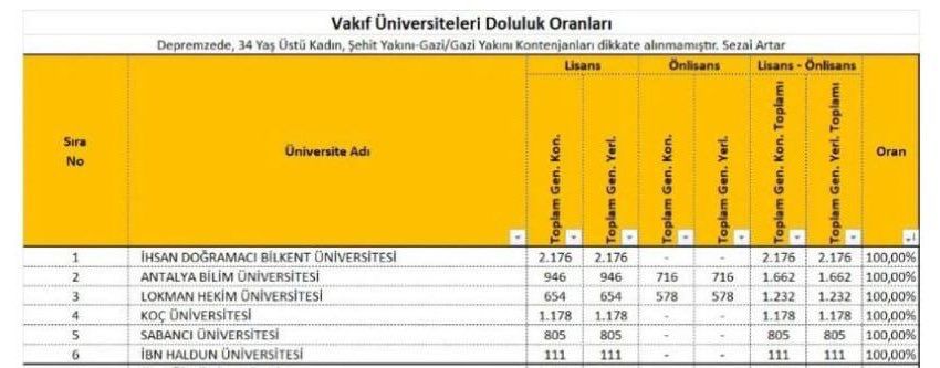 Antalya Bilim Üniversitesi, 2025 YKS tercih sonuçlarına göre büyük bir başarıya imza attı. Toplam 1662 kontenjanının tamamı dolarak %100 doluluk oranına ulaşan üniversitemiz, Türkiye’deki vakıf üniversiteleri arasında ikinci sırada yer aldı.