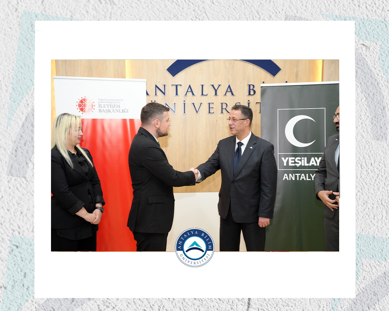 ABÜ Senato Toplantı Salonu’nda düzenlenen törende protokol; Cumhurbaşkanlığı İletişim Başkanlığı Antalya Bölge Müdürü Ahmet UZUN, Yeşilay Antalya Şubesi Başkanı Osman Zeki ÖZCAN ve Antalya Bilim Üniversitesi Rektörü Prof. Dr. Semih EKERCİN tarafından imzalandı.