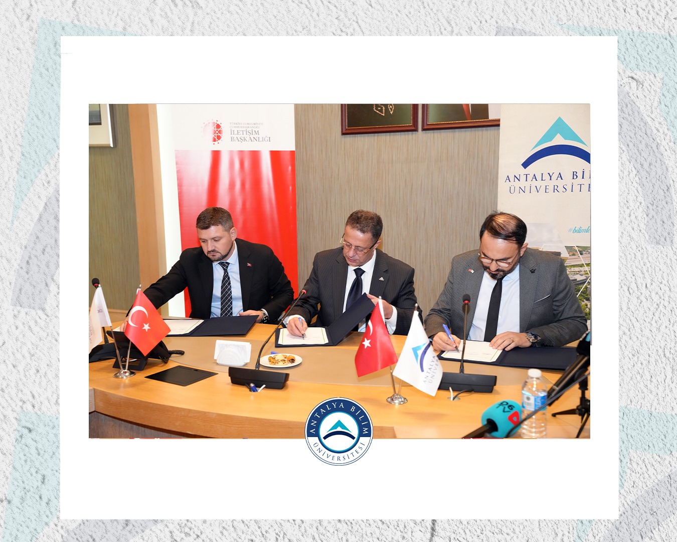 Antalya Bilim Üniversitesi’nde (ABÜ), Türkiye Cumhuriyeti Cumhurbaşkanlığı İletişim Başkanlığı Antalya Bölge Müdürlüğü, Antalya Bilim Üniversitesi ve Türkiye Yeşilay Cemiyeti Antalya Şubesi arasında “Bağımlılıkla Mücadele İş Birliği Protokolü” imza töreni ve basın toplantısı gerçekleştirildi.